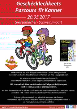Fir d'Owendiessen sou gutt ewéi Méiglech plangen ze kënnen, géife mir Iech bieden sech bis spéitstens den 20. November 2017 iwwer eis Email Adress muselbikes123@gmail.com unzemellen.